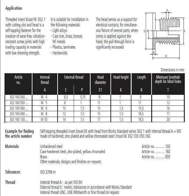 302-1型自攻临沂丝套是一种新型的紧固件,使用后能够加强螺纹强度。产品有内外牙,将其嵌入塑料,铝合金,铸铁,铜等较软材料内,形成的内螺纹孔就可以具有较高的强度。